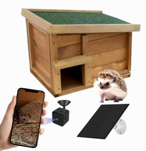 Smart Hedgehog House with HD Camera – Solar-Powered Wi-Fi Nest Box with Night Vision & Audio | Weatherproof Wooden Hedgehog Shelter for UK Gardens | Wildlife Watching Gift for Nature Lovers