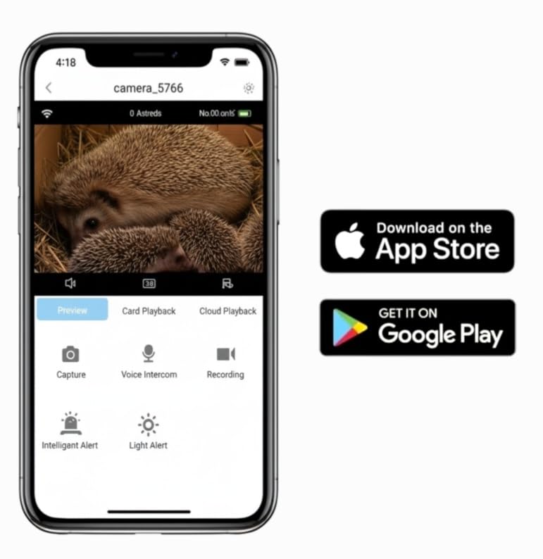 - HD Wildlife Camera with App View – Enjoy 1080p HD live streaming via Wi-Fi connection. The built-in infrared night vision and microphone let you see and hear hedgehogs clearly, day or night, directly from your smartphone (iOS & Android).