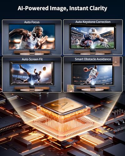 - 【Precision Vision | AI Auto Adjustment with 3s】This outdoor projector is equipped with fully automatic focus, 6D keystone correction, obstacle avoidance, and screen-fit. By an advanced AI adjustment algorithm, it outperforms conventional 1080p projectors in speed and precision, delivering razor-sharp images and perfect alignment in just 3 seconds. 4P manual keystone, adjustable 4:3 and 16:9 aspect ratios, and 50%–100% zoom ensure perfectly aligned images for an immersive movie night experience.