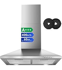 - Elegant & Durable Design: This cooker hood 60cm features a timeless pyramid silhouette that blends seamlessly into any kitchen decor. Crafted from premium brushed stainless steel, it is fingerprint-resistant, corrosion-proof, and a breeze to wipe clean, maintaining its sleek look effortlessly.
