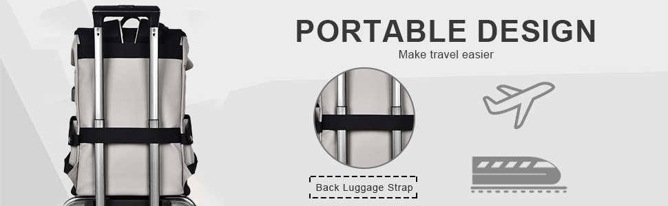 - On the back of the backpack there is a luggage strap to attach the backpack on the handle of the suitcase for easy carrying, ideal for travel and outings