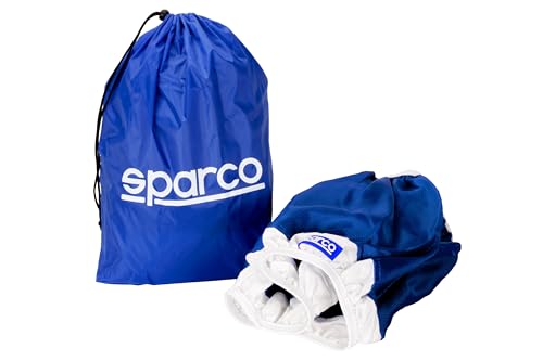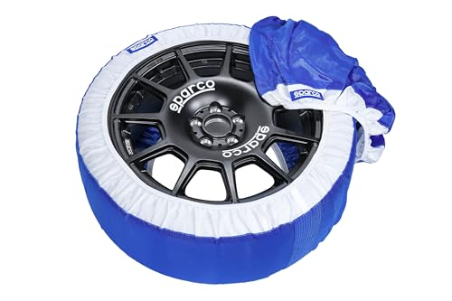 Thanks to their intuitive, tool-free installation system, they can be easily fitted even on vehicles with limited wheel arch clearance. The visible Sparco logo, positioned outward, helps with correct alignment, making them quick and easy to install for any user. Their blue and white design is not only attractive but also enhances visual identification. The package includes 2 units (1 pair), 1 pair of gloves, instructions, and a practical storage bag for keeping them neatly stored after use.
