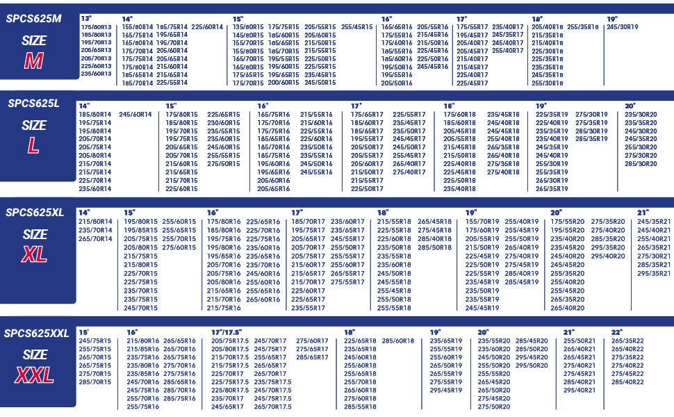 Size XL. To find out which size matches your tire, please refer to the image gallery on the product page, where you will find the full compatibility chart with all tire dimensions.