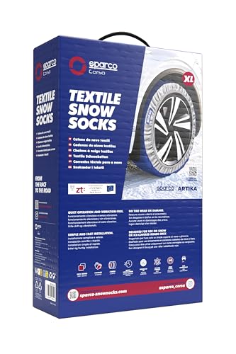 Sparco Textile Snow Chains Model Artika Size XL. Silent and Vibration-Free. Quick and Easy Installation. EN-16662-1 and ÖNORM V5121 Certified. ABS Compatible, Blue