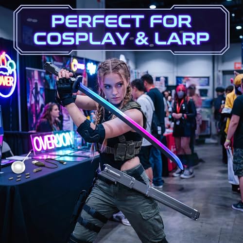 - [Swing triggers sound and light] Single-button LED color shifts and motion-triggered swing sounds create seamless dueling immersion—great for a light up sword experience