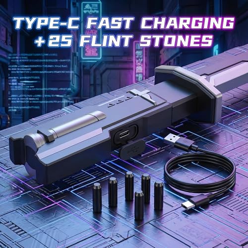 - [Equipped with a USB-C charging interface and 5 spare flint devices] USB-C fast charging and 5 spare flints enable uninterrupted participation in parties or creative games—ideal for a sparkblade sword enthusiast