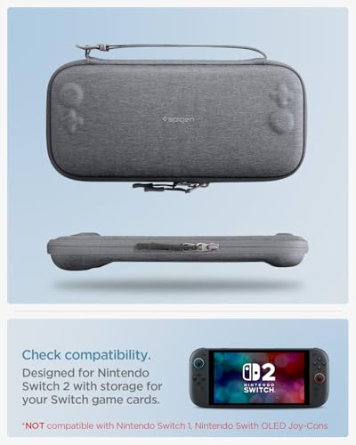 Spigen Klasden Pouch 2 Carrying Case for Nintendo Switch 2 (2025) Compact Travel Pouch with 12 Game Slots Rear Grip and G Hook – Charcoal Gray