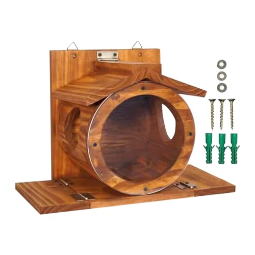 Bring charm to your outdoor area with this wooden squirrel feeder, built to endure all types of weather. Perfectly suited for placement in gardens, backyards, or on trees and fences, this feeder holds food such as corn, nuts, and hay, attracting squirrels, chipmunks, and more. Watch these lively animals interact while they enjoy meals provided by this thoughtfully crafted box, a wonderful addition to enhance your connection with nature.