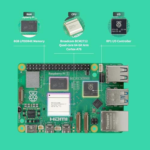 High-performance system: The Pi 5 8GB is technically certified and equipped with a 2.4GHz 64-bit quad-core Arm Cortex-A76 processor, offering 2-3 times the CPU performance of the Pi 4. It comes pre-installed with a 64-bit Raspberry Pi operating system, requiring no additional setup; enjoy a high-speed experience right out of the box.