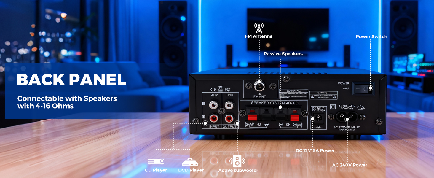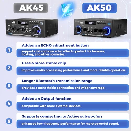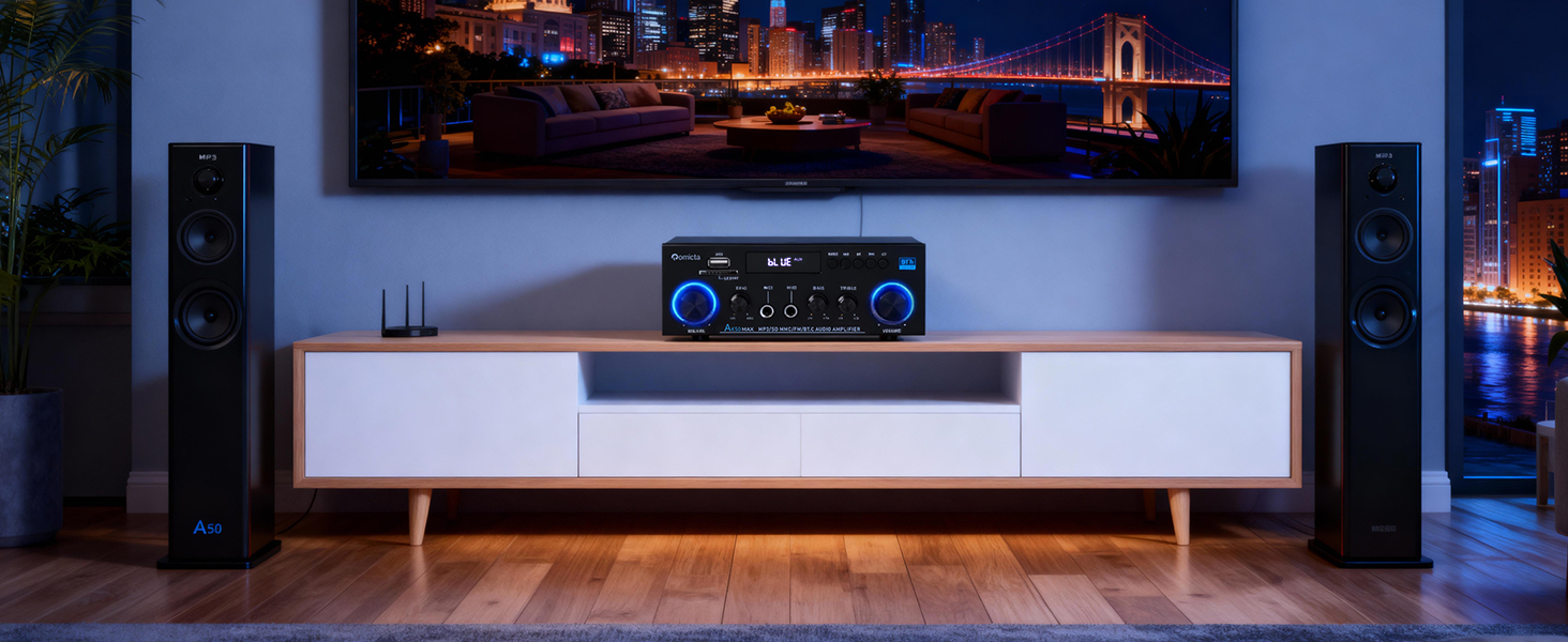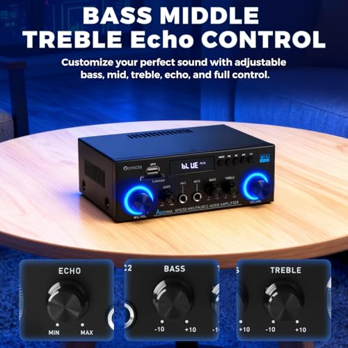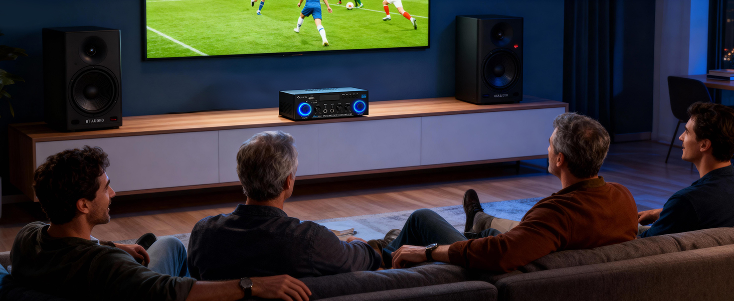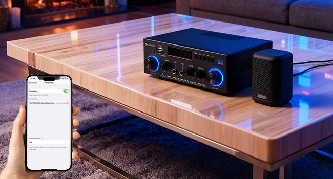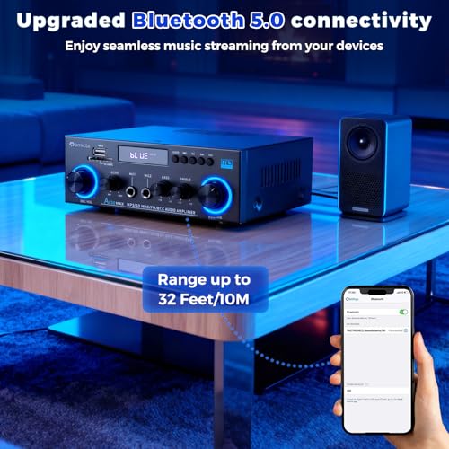 - Advanced Bluetooth 5.0 Connectivity: Enjoy crisp, high-fidelity sound with integrated Bluetooth 5.0. Designed to eliminate audible pops and interference, this amplifier delivers a stable connection when your device is within 10 metres (or 5 metres when used with a TV or PC) without obstructions such as walls.