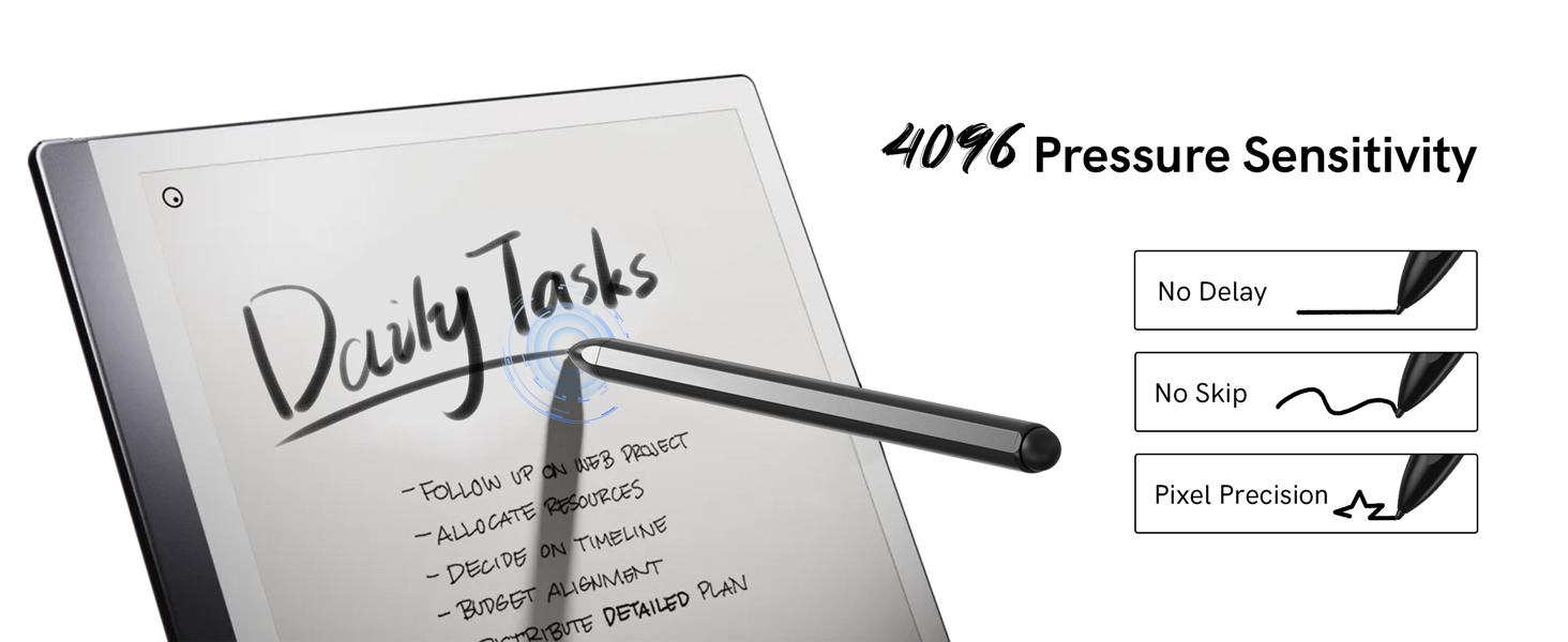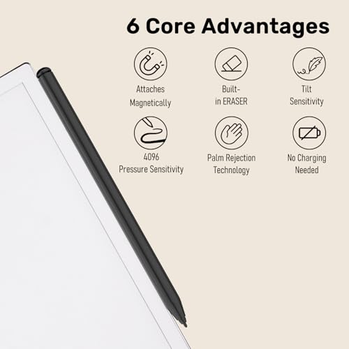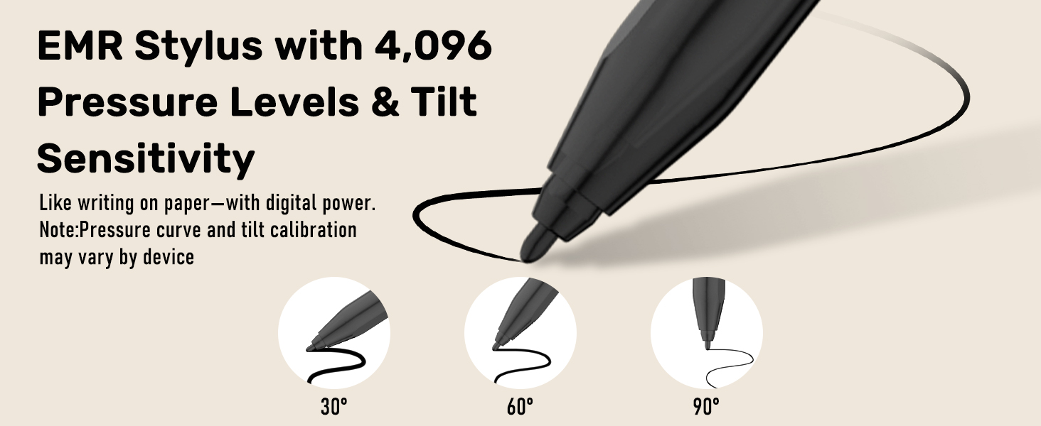 【4096 Levels of Pressure Sensitivity for Smooth Writing】Equipped with 4096 levels of pressure sensitivity, this remarkable pen delivers precise and delicate control whether you're taking notes, sketching, or creating illustrations. Experience a natural writing feel, as if you're writing on paper, and expand the possibilities of your creative work.