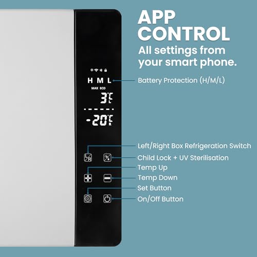 - Smart App Control for Total Convenience: Manage all settings of your portable compressor fridge from your smartphone. Adjust temperature, switch between Eco Mode for energy saving or Max Mode for fast cooling, and monitor performance anytime.
