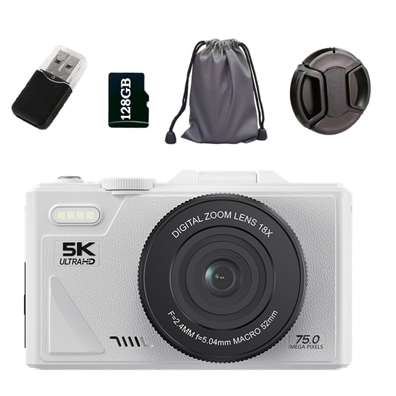SWZEC pickdeals – cliktric compact camera 5k, vlogging camera, digital camera for travel (White+128GB)