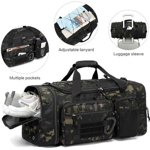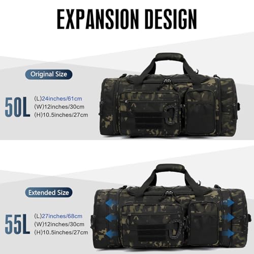Tactical Gym Bag Mens Travel Duffel Bag 50-55L Expandable