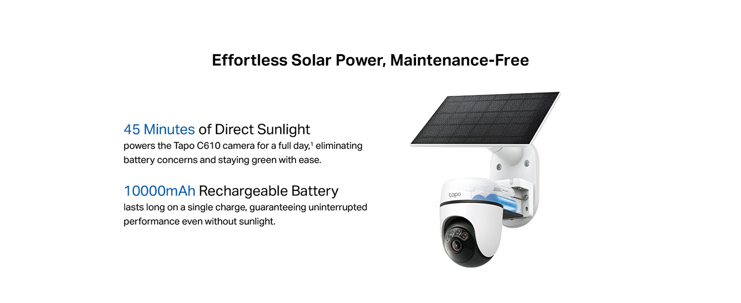 Uninterrupted Power Supply: Enjoy a maintenance-free security experience with the Tapo Solar Panel, which provides a continuous power supply and flexible installation.