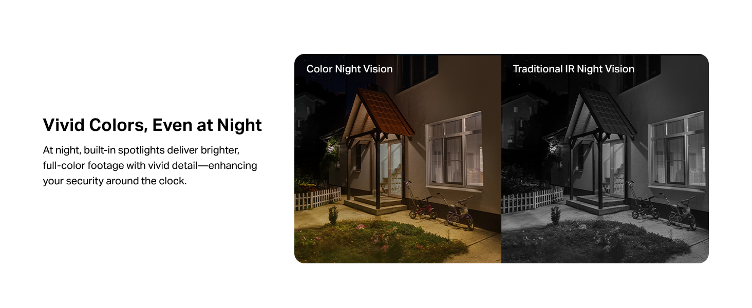 Vivid Colors, Even at Night: Instead of black-and-white images, C610 KIT offers full-color images at night with built-in spotlights, ensuring details in low-light conditions.