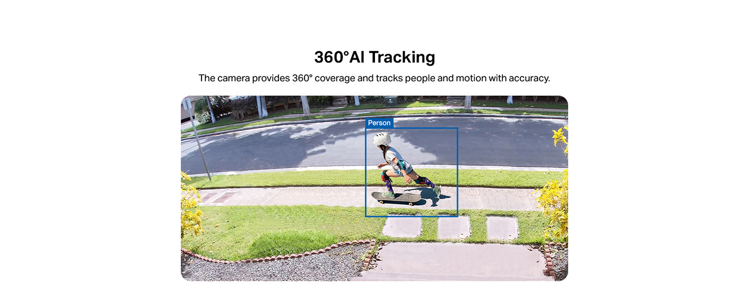 360° AI Tracking: The camera delivers full 360° coverage with smart AI that accurately detects and tracks people and motion.