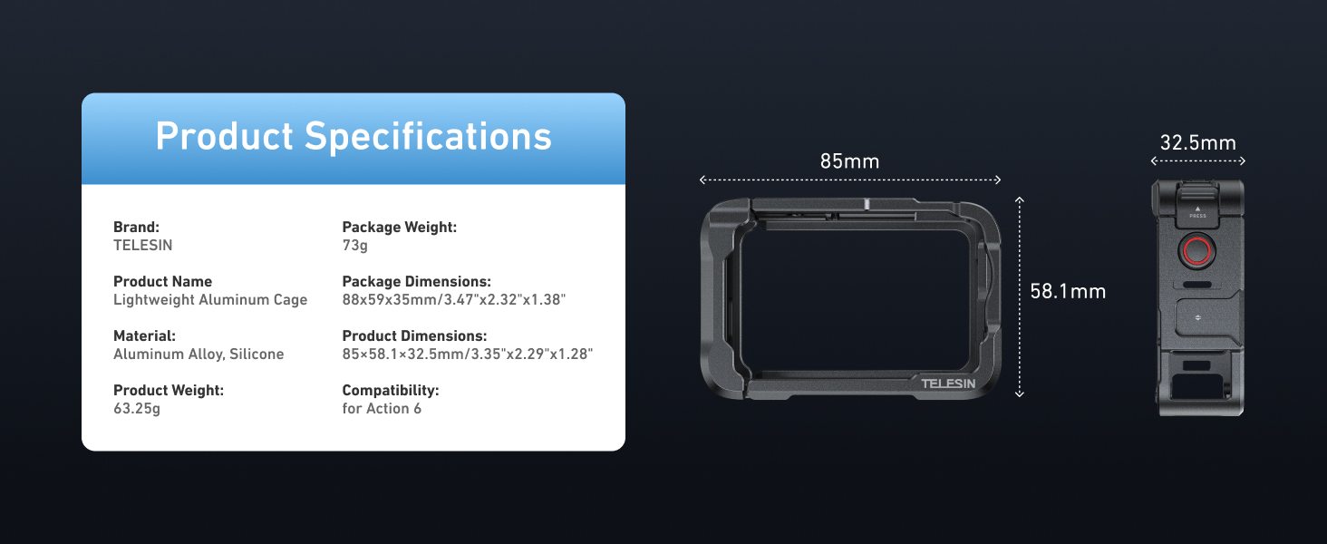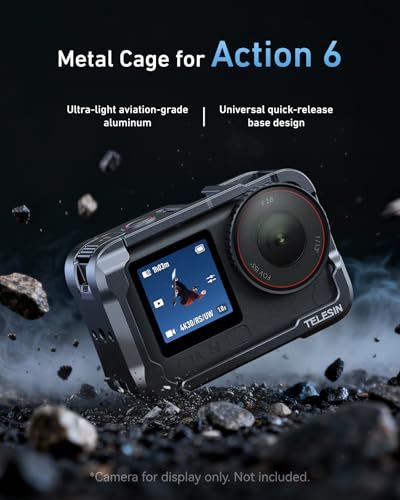 【TELESIN Custom Metal Cage for DJI Osmo Action 6】This lightweight aluminum For DJI Action 6 cage is precisely CNC-machined for a perfect fit. Designed as a dedicated For DJI Action 6 case, it provides durable metal protection while keeping all functions fully accessible.