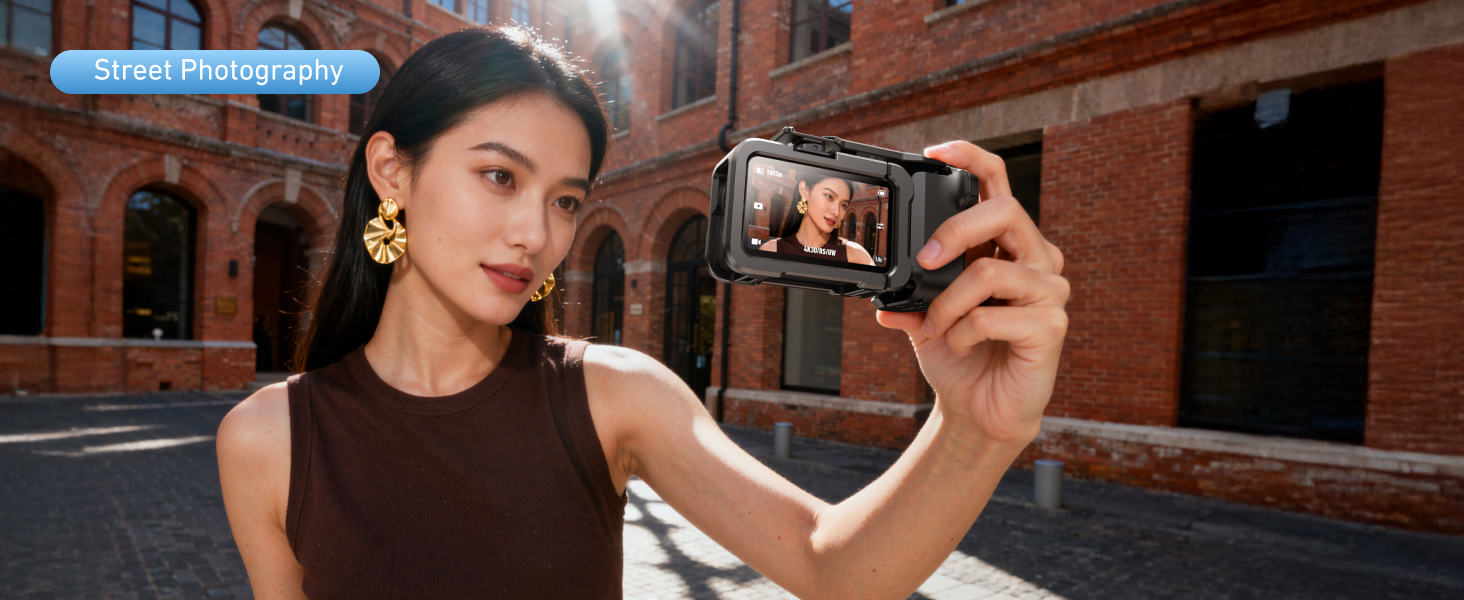 【Multiple Expansion Ports for Creator Flexibility】Equipped with a 1/4"-20 thread, ARRI locating holes, and a cold shoe mount for advanced accessory expansion. Attach tripods, fill lights, microphones, and more—making this For DJI Action 6 metal cage a versatile choice for creators