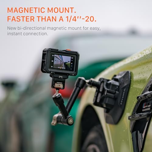 - Included with the Base Kit is the Magnetic Baseplate that magnetically connects to the bottom of the DJI Action 6 and Nano. It provides a 1/4″-20 thread which can be used to mount articulating arms and other accessories. The Bi-Directional design allows the camera to be mounted to the baseplate in either direction for quick mounting and setup flexibility.