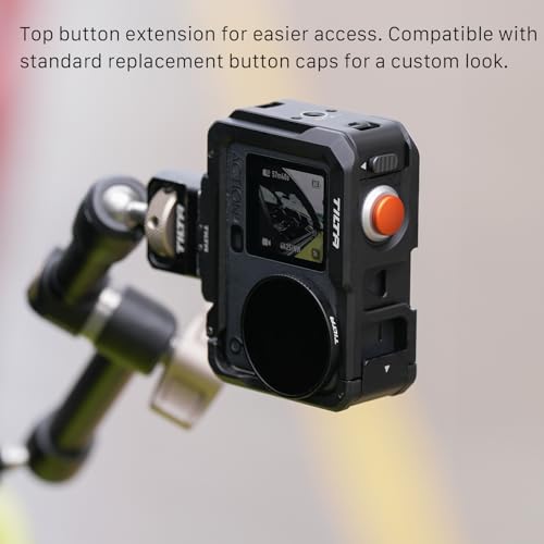 - This multi-functional Camera Cage is compatible with the DJI Action 6 and is precision designed for a seamless custom fit. This system supports additional accessories via mounting points such as a 1/4″-20 Thread with Locating Points, a Cold Shoe Receiver and compatibility with the DJI Magnetic Connector. The power button and card slot remains open for fast card swaps and charging while shooting while the removable battery side cover allows for fast battery swaps without removing the cage. The top of the cage features an ergonomic button extension for easier access. This can also be swapped with other optional button caps for unique looks.