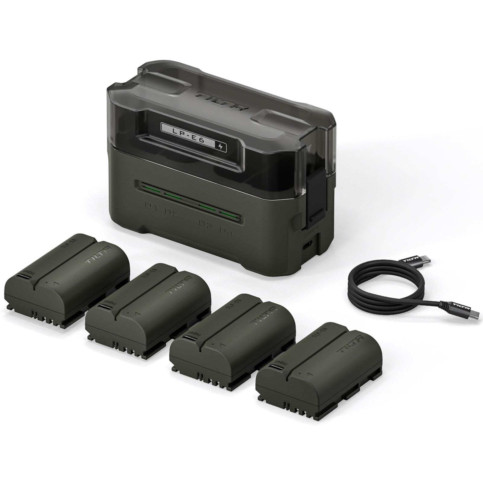 TILTA LP-E6P Replacement Battery and Charger Set, with 4 Pack 2400 mAh Batteries and Four Channel USB-C PD 45W Fast Charger, Compatible with Canon EOS R5 Mark II,R6 Mark II,R7,R6,5D IV,6D TBC-E6P-B-GN