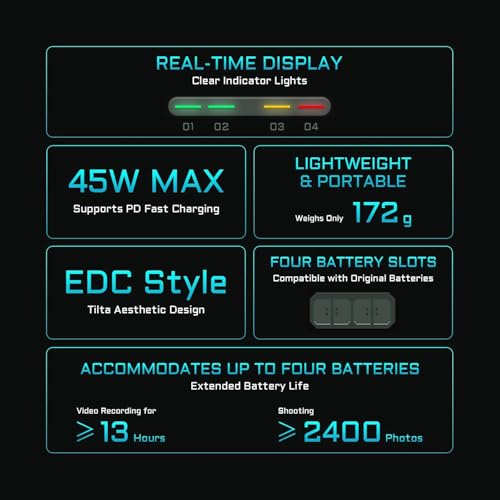 FOUR SLOTS Allow Users to Charge Four Batteries Simultaneously.Show Real Time Charging Information for Each Battery Slot