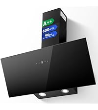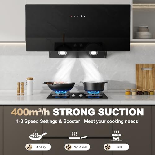 - Spacious & Safe Angled Design: Featuring a streamlined angled silhouette, this 90cm kitchen hood prevents accidental bumps while providing a clear view. Its generous 90cm coverage ensures efficient capture of cooking fumes across larger kitchens. Easy to install under cabinets or on the wall, the sleek glass finish adds modern elegance to any kitchen decor.