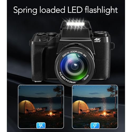 - 64MP 4K VIDEO: The 4K digital camera is equipped with a high performance CMOS sensor chip, supporting 64MP still photo and 4K high definition video recording. With 16X digital zoom, the picture quality is fine and lifelike, restoring the wonderful world
