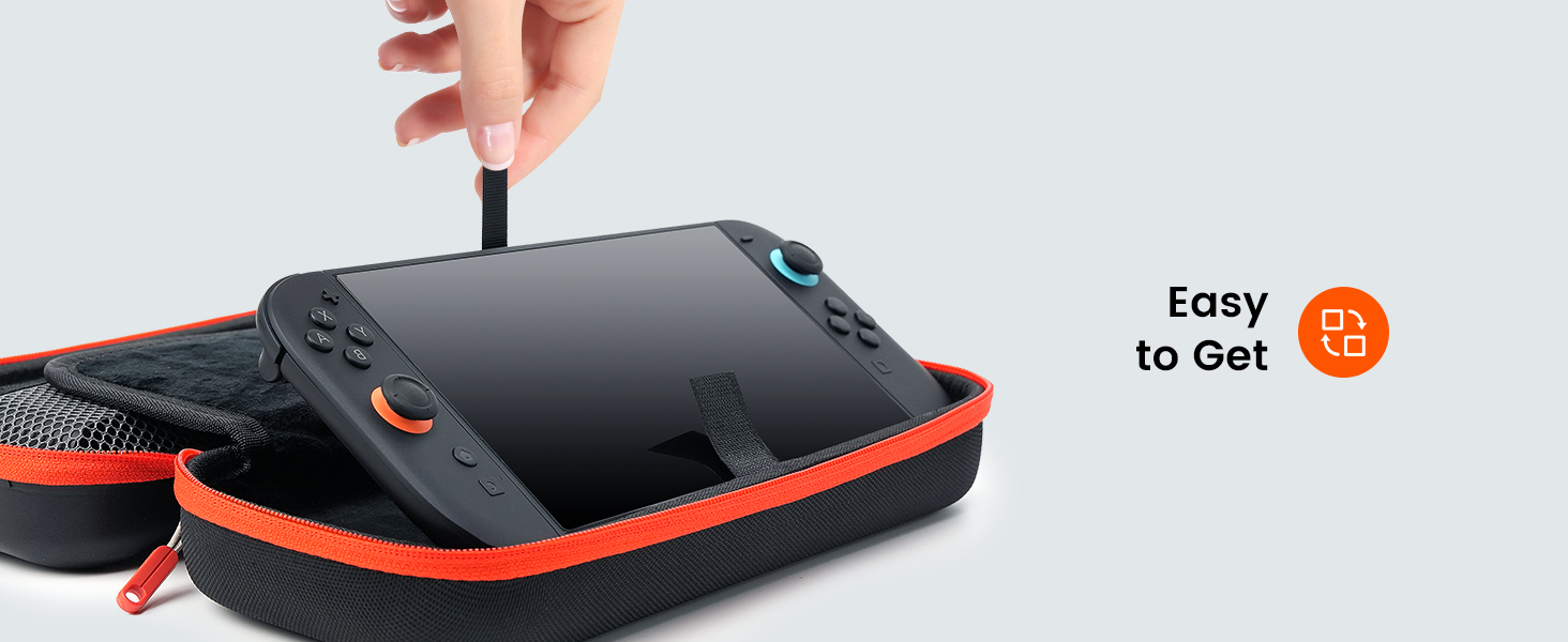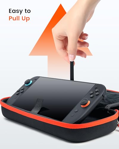 - SWITCH 2 PERFECT FIT: Designed as a dedicated switch 2 case, this organizer provides a precise fit for your console. The custom EVA interior cradles the device, while the case for nintendo switch 2 features bottom grooves to hold it snugly for stability. A built-in pull strap ensures instant retrieval, making this switch2 case both secure and highly accessible.
