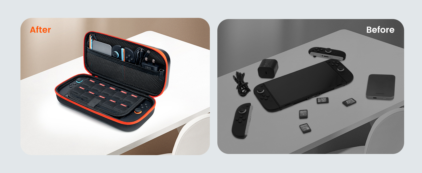 - EXPANDED CHARGER-FRIENDLY STORAGE: This switch 2 carrying case is built for uncompromised capacity, with a roomy zippered mesh pocket that easily fits bulkier essentials like AC Adapter (fixing a common hassle for on-the-move gamers) plus cables, joycons, power banks, and other switch 2 accessories. It also boasts 10 game slots, so this switch 2 carry case keeps your entire gaming kit organized and ready for marathon sessions without extra bags or clutter.