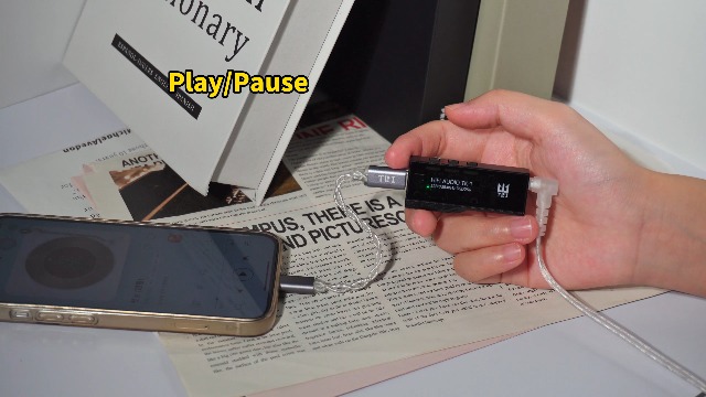 【User-Centric Design with Physical Controls】Designed for convenience and control. Features three independent physical buttons for volume adjustment (+/-) and play/pause/skip track control, putting music management at your fingertips. Clear indicator lights show the active audio format (Green for PCM, Red for DSD). TK1 usb dac amp Support High-definition Calls.