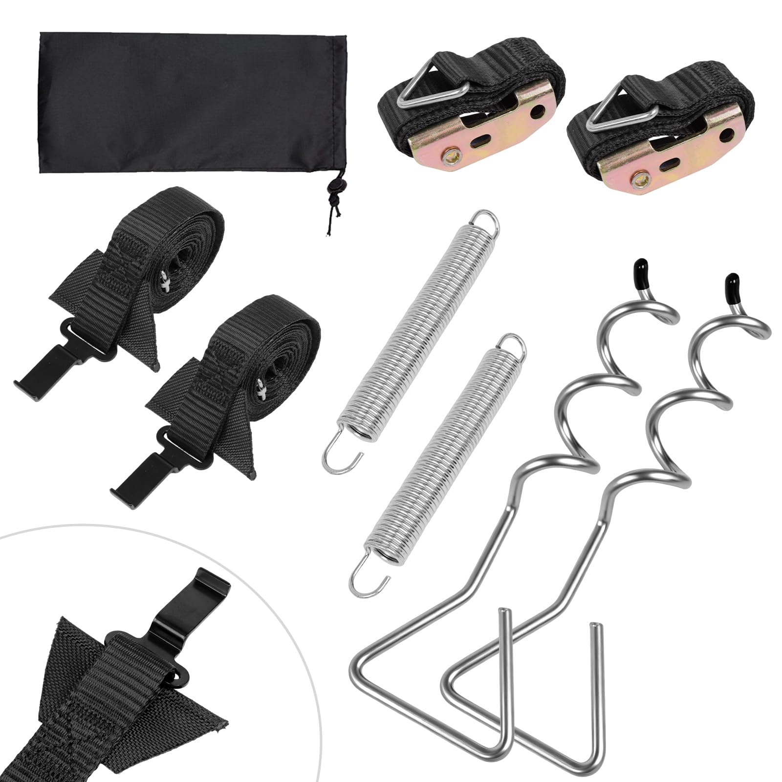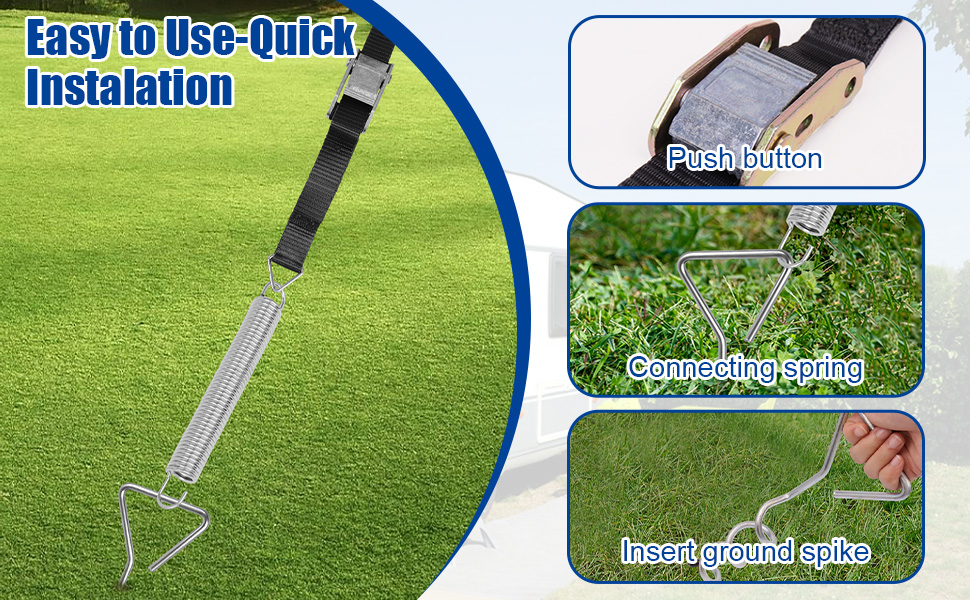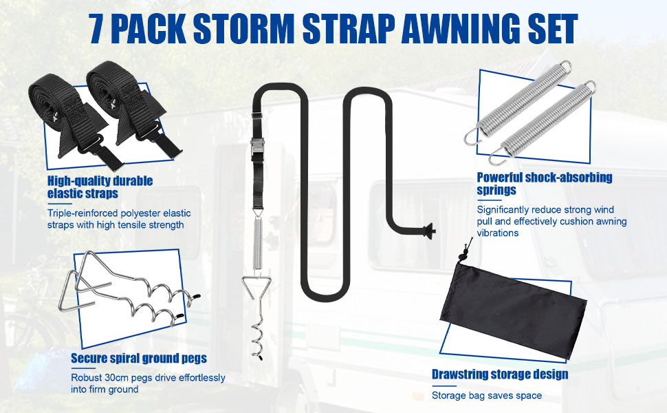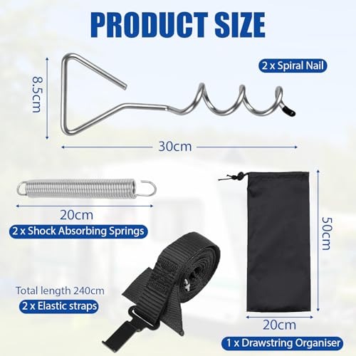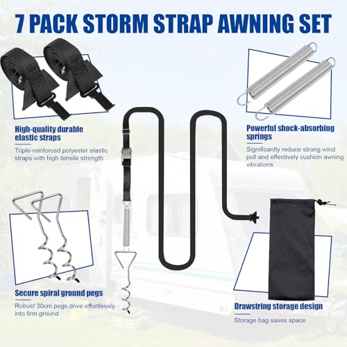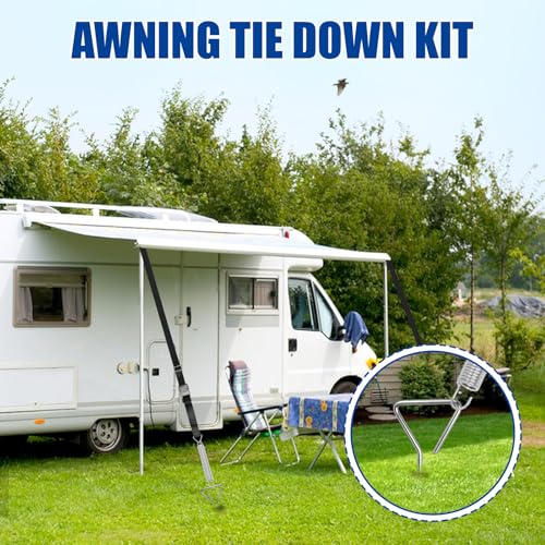 TUAKIMCE Heavy Duty Awning Tie Down Kit Storm Straps Kit for Caravan Motorhome Awing Storm Protection, Complete Set with Bungee Straps, Springs & Spiral Ground Anchors