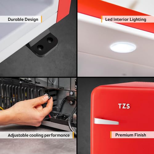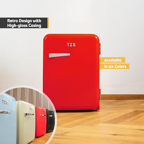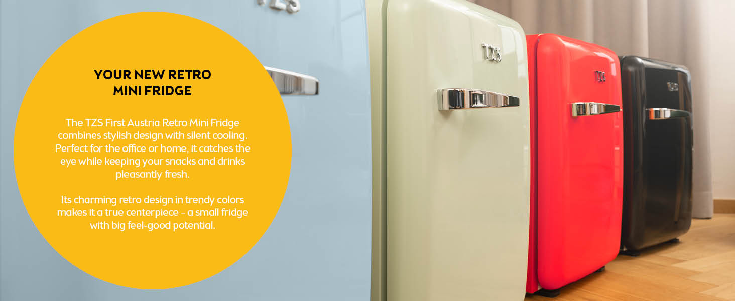 RETRO MINI FRIDGE DESIGN: Adorn your space with the elegant TZS First Austria mini fridge freezer. This counter top fridge blends vintage aesthetics with modern functionality, making it an ideal subcold mini fridge for style-conscious users