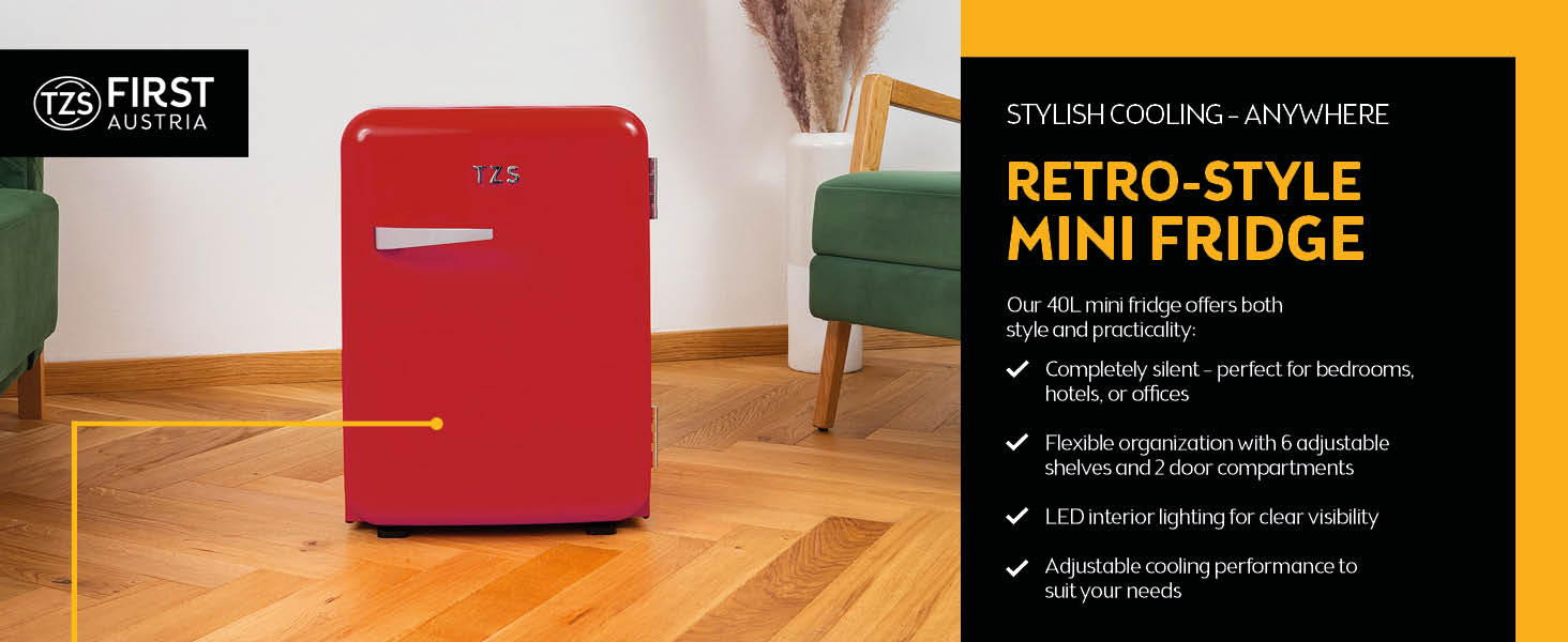 TZS First Austria – Retro Mini Fridge 40L Silent – Small