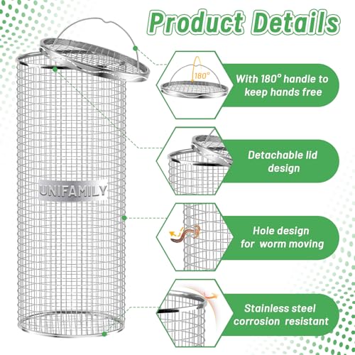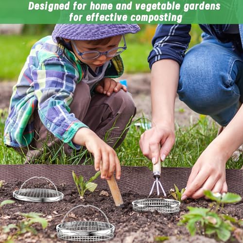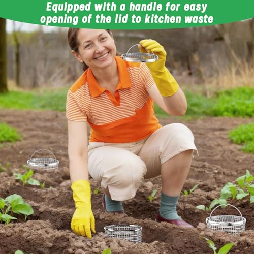 UNIFAMILY 2pack Inground Worm Composting Bin, Stainless Steel Outdoor Compost Bin with Handle, Worm Composter, Worms Bins for Composting Recycling Kitchen Food Waste (Compost Bin with Handle)