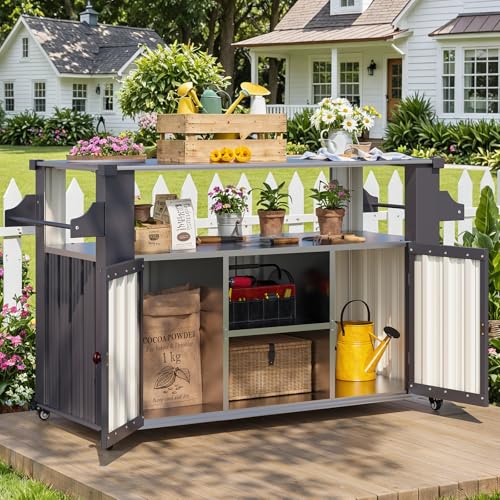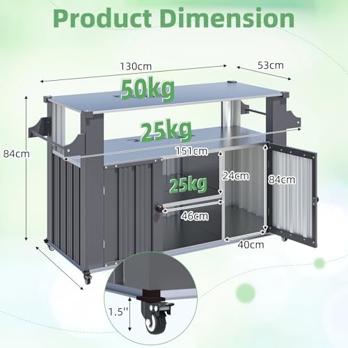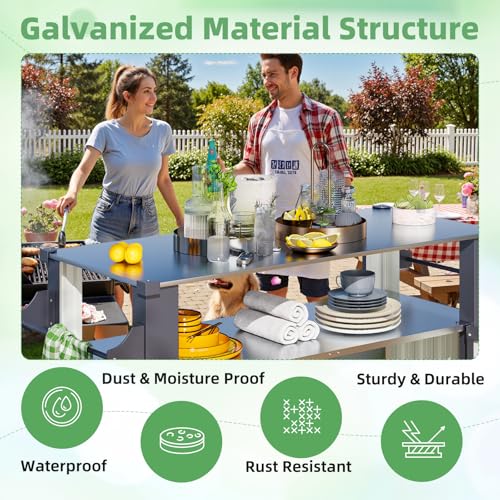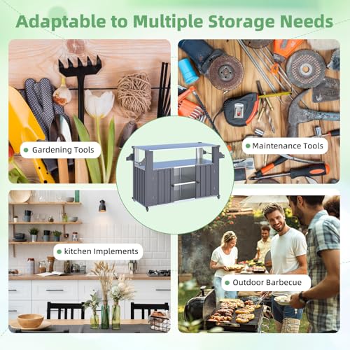 【Multifunctional Storage】Works as Kitchen Island, Rolling Bar Cart Storage, or Tool Chest Garage Cupboard. Rust-resistant outdoors, fits garage/workshop/backyard/kitchen.