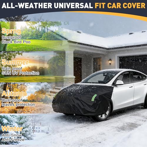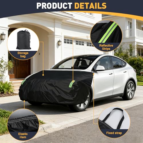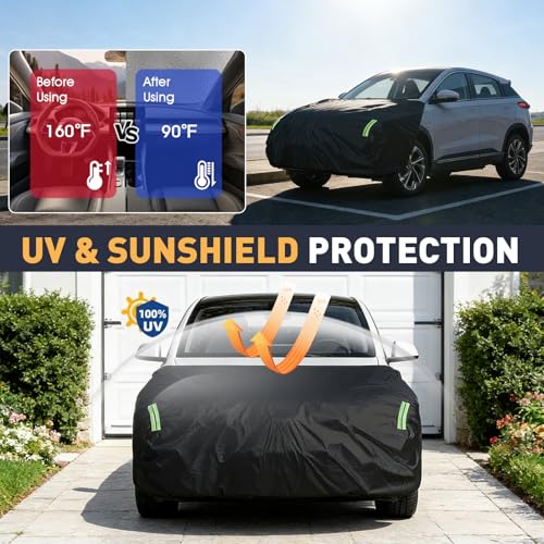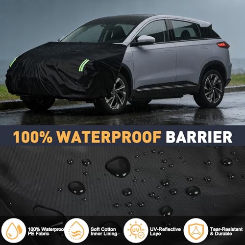 - 【Secure Design with Safety Features】:Equipped with reflective straps (in green), the cover boosts the vehicle’s visibility in low-light conditions. Integrated straps and elastic bands keep it firmly attached to the hood, preventing shifting even in windy weather.