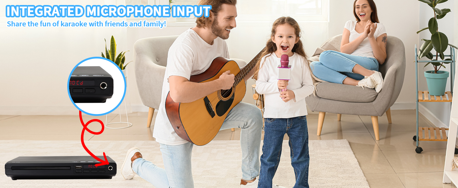 - Compact and convenient design: The space-saving square form factor fits effortlessly on shelves or beneath televisions. The included remote control enables remote access to functions such as repeat, zoom, slow motion and volume adjustment. The integrated microphone input allows you to share the fun of karaoke with friends and family anytime, anywhere. This video player is suitable for smart televisions, traditional televisions, standard screens, projectors and home cinema systems, and also makes an excellent gift for friends and family