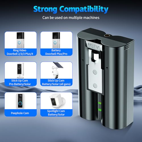 【Highly Compatible with a Wide Range of Ring Devices】Crafted with premium lithium cells, our ring battery pack seamlessly replaces original batteries for Ring Spotlight Cameras, Video Doorbells 2/3/3+/4, Indoor/Outdoor Cameras (2nd & 3rd Gen), Spotlight Camera Battery Edition, as well as Smart Solar Flood Lights, HD Indoor/Outdoor Cameras, and Peephole Cameras.