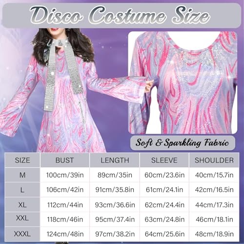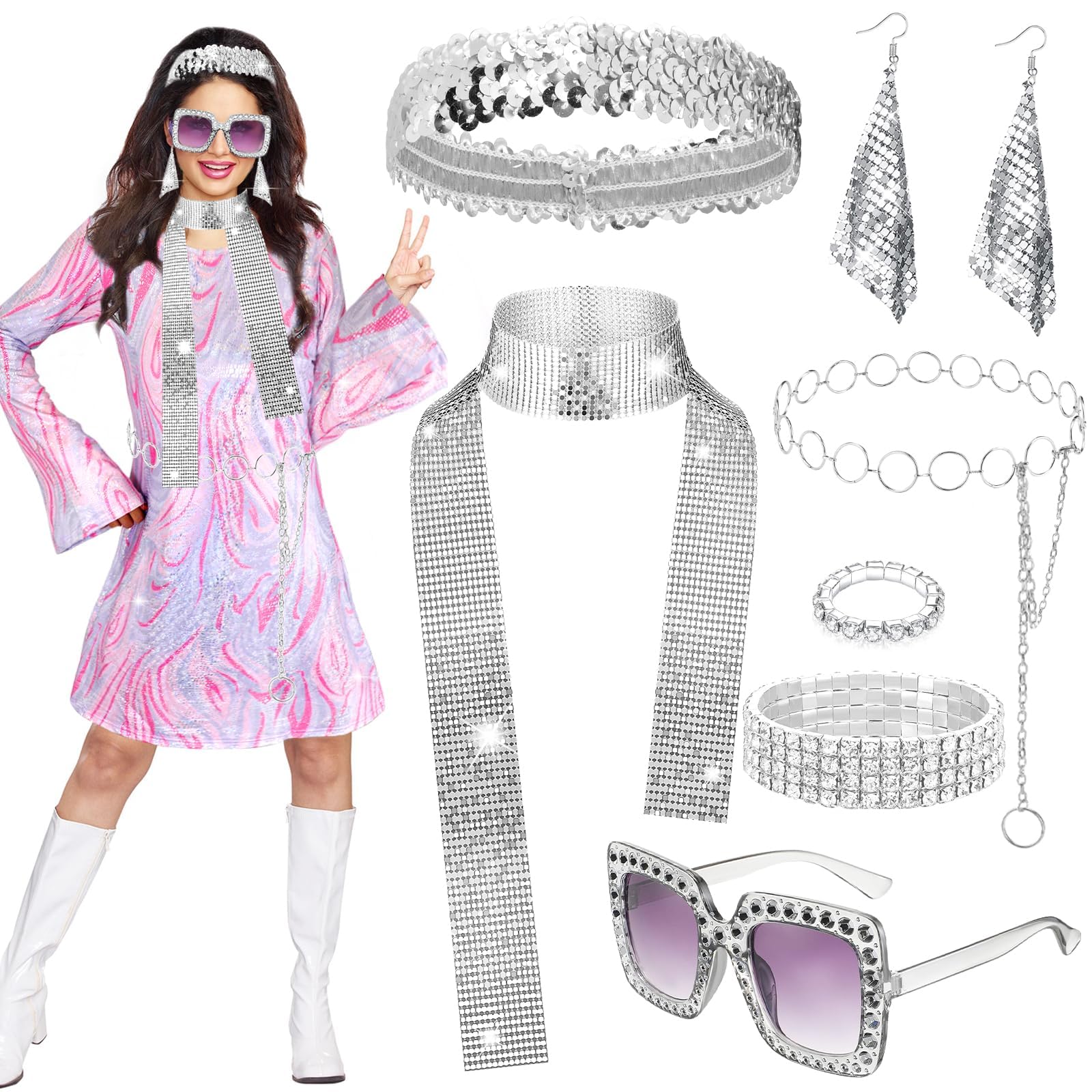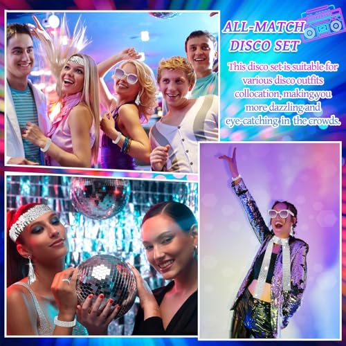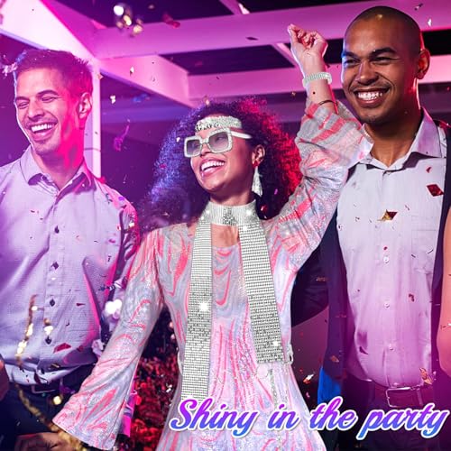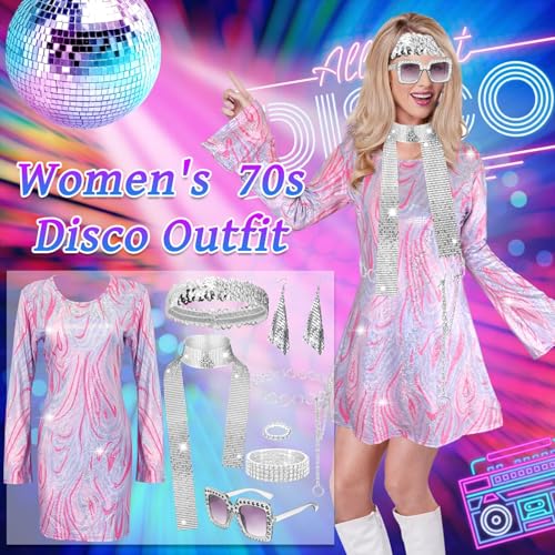 UxClishe 7 Pcs 1970s Disco Costume Set for Women, 70s Shine