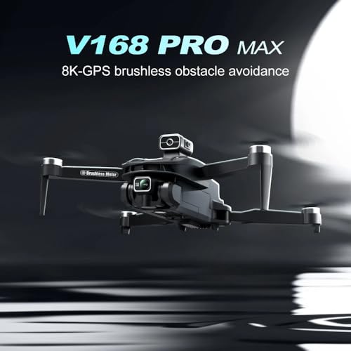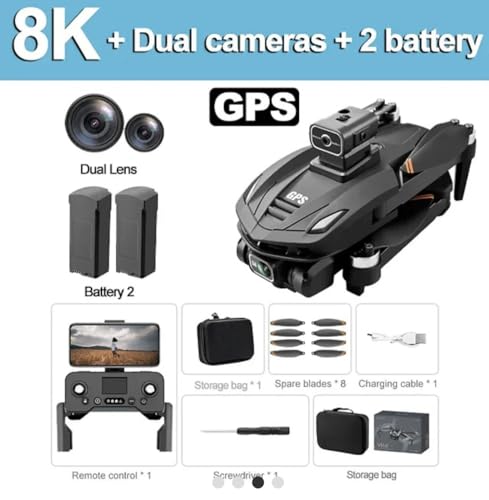 Vassco V168 GPS Drone (2 Batteries), Professional, Remote Control, Black, Advanced, V168, Three Camera System, Adult, 8K Video, 8K Photo, 5G WiFi, with LiPo Battery