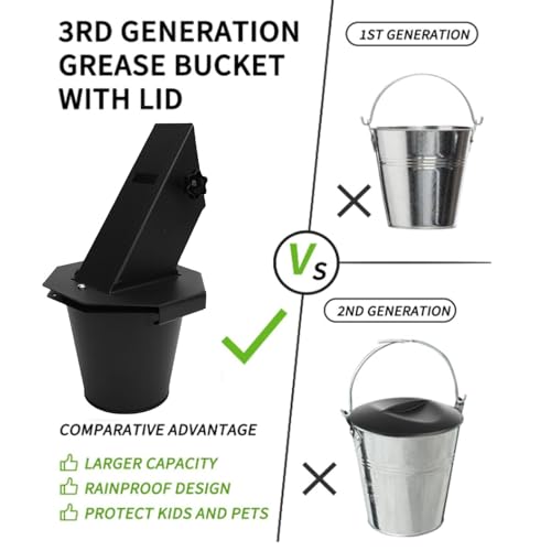 Safe for Toddlers and Pets: This upgraded grease bucket is designed to safely hold grease, enhancing security and cleanliness around your smoker or grill. You can use it with peace of mind.