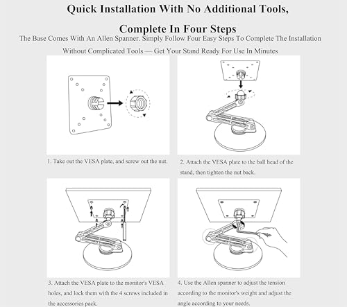 VESA Monitor Stand, Compatible with Up To 19inch Monitors, Supports 50 x 50/75 x 75/100 x 100 (mm) VESA Mounting Holes,Supports Multi-axis Rotation, Portable Adjustable Foldable