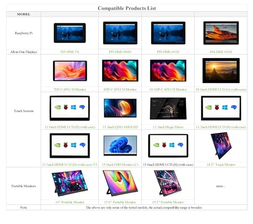 Compatible With Small-sized Portable Monitors, HDMI Touch Screens, and RPi All-in-one Displays.