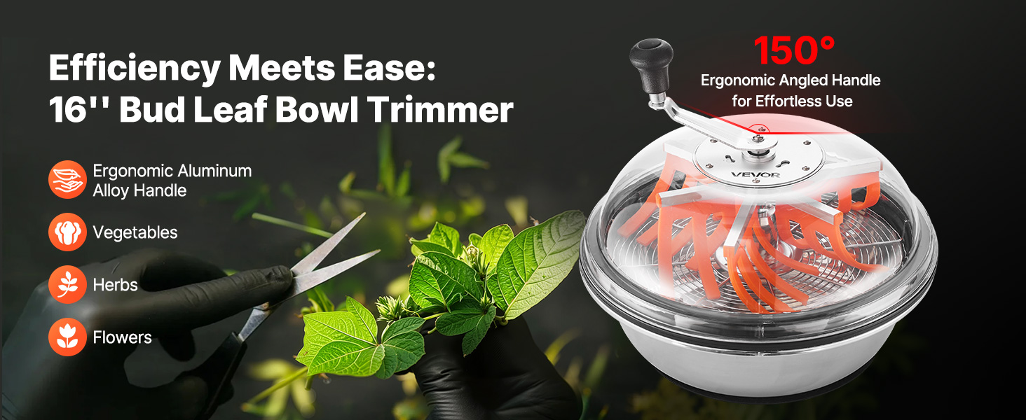 Ergonomic Comfort: Designed with a 145° angled aluminum handle and anti-slip silicone pads, this bud leaf bowl trimmer offers a stable, ergonomic grip—ensuring comfort and control even during long sessions.