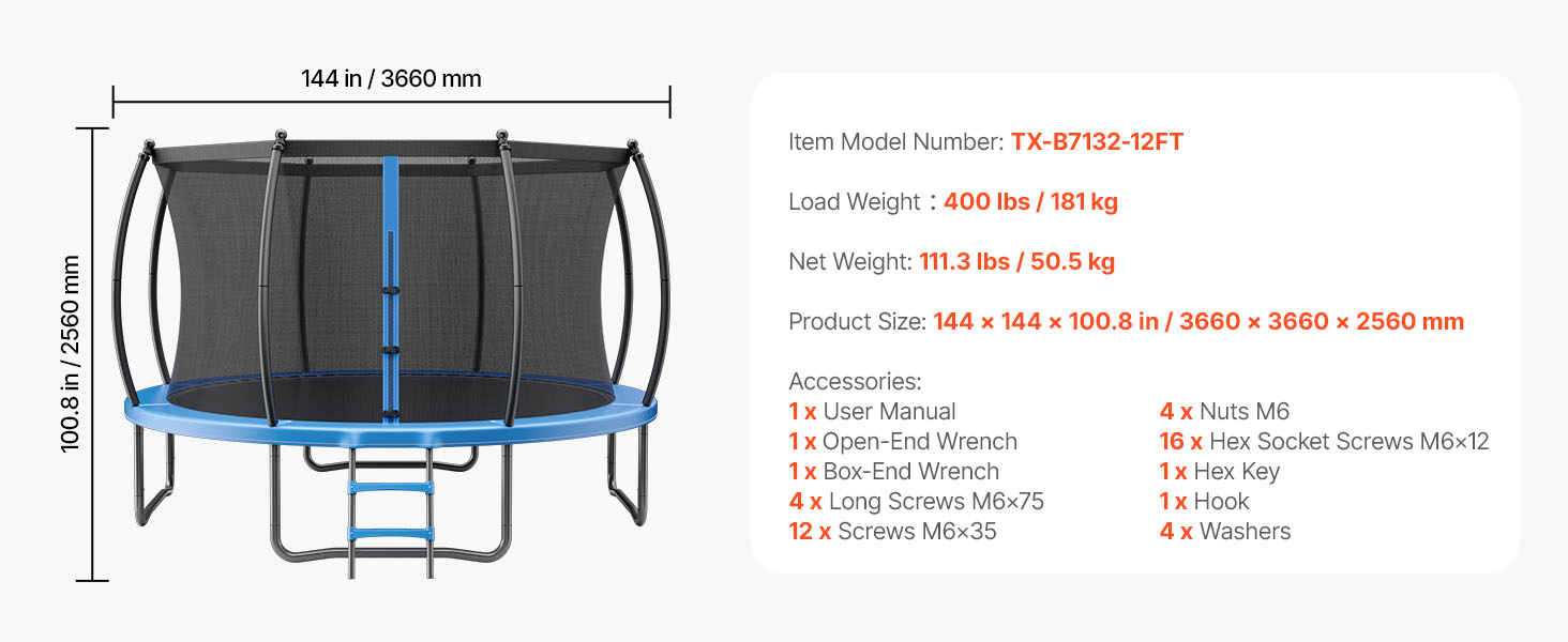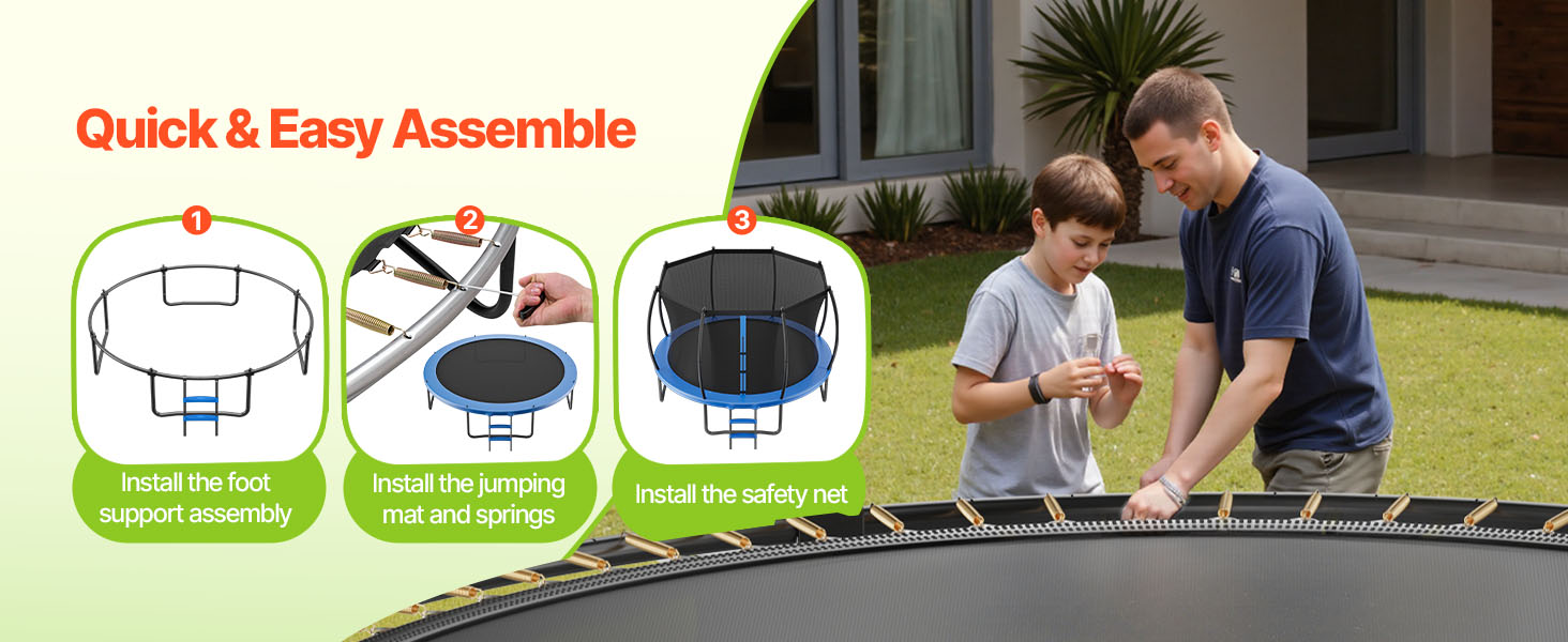Easy Assembly: One adult can set round trampoline for kids up quickly. Precision-aligned frame holes and threaded connections make assembly simple and fast, bringing fun toy to your kids in no time