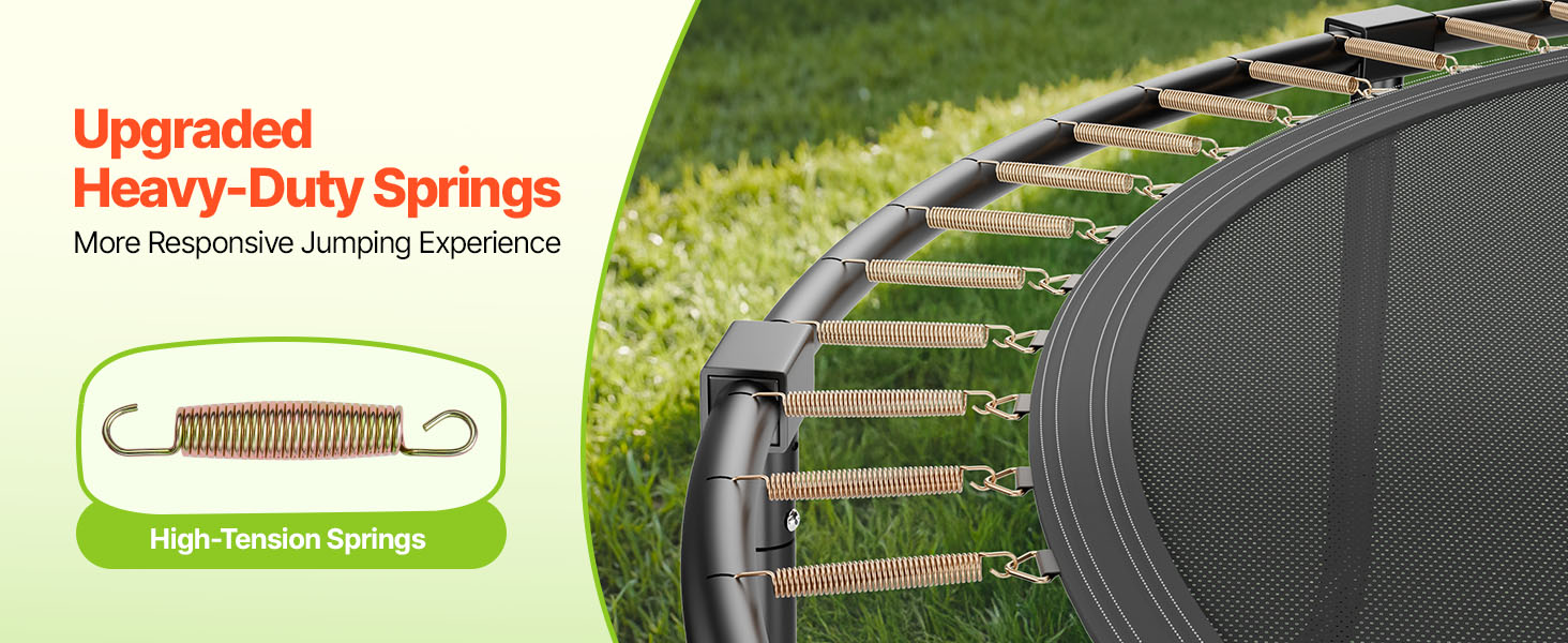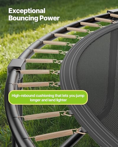 Sturdy & Durable: The recreational trampoline features upgraded all-steel frame that resists bending. Supported by four U-shaped legs, it is durable and sturdy. Metal parts feature wear-resistant zinc coating for rust protection. 72 springs provide stable and secure rebound with every jump