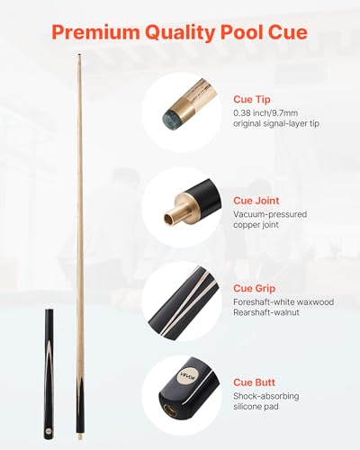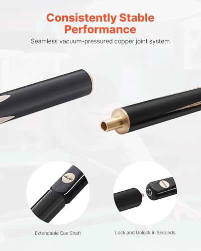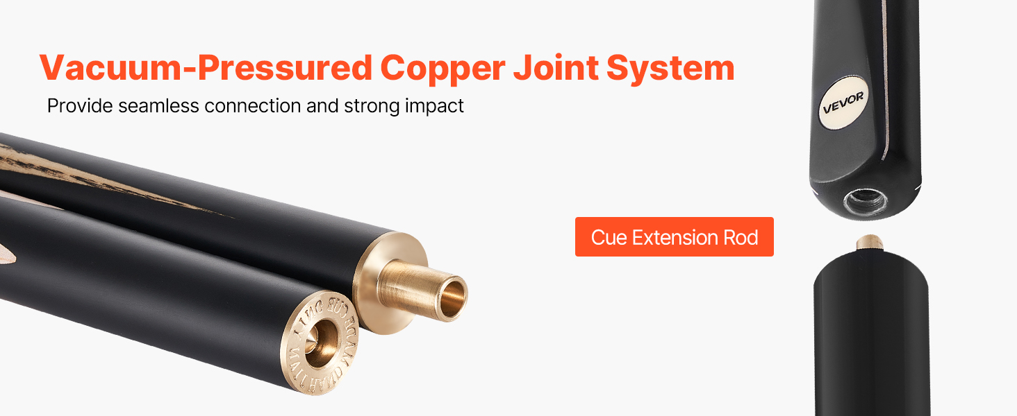 - Seamless Air Pressure Joint: Designed with an air pressure copper joint, this VEVOR pool cue ensures a secure, smooth connection. The matte coating offers a comfortable, slip-resistant grip. It also includes an extension for added reach, enhancing playability