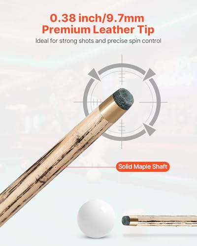 - Precision 9.5mm Tip: This snooker cue kit features a 0.38 inch/9.7mm signal-layer leather tip with precise control craftsmanship. The firm center and soft edges create a perfectly balanced tip, boosting accuracy, making it ideal for snooker games